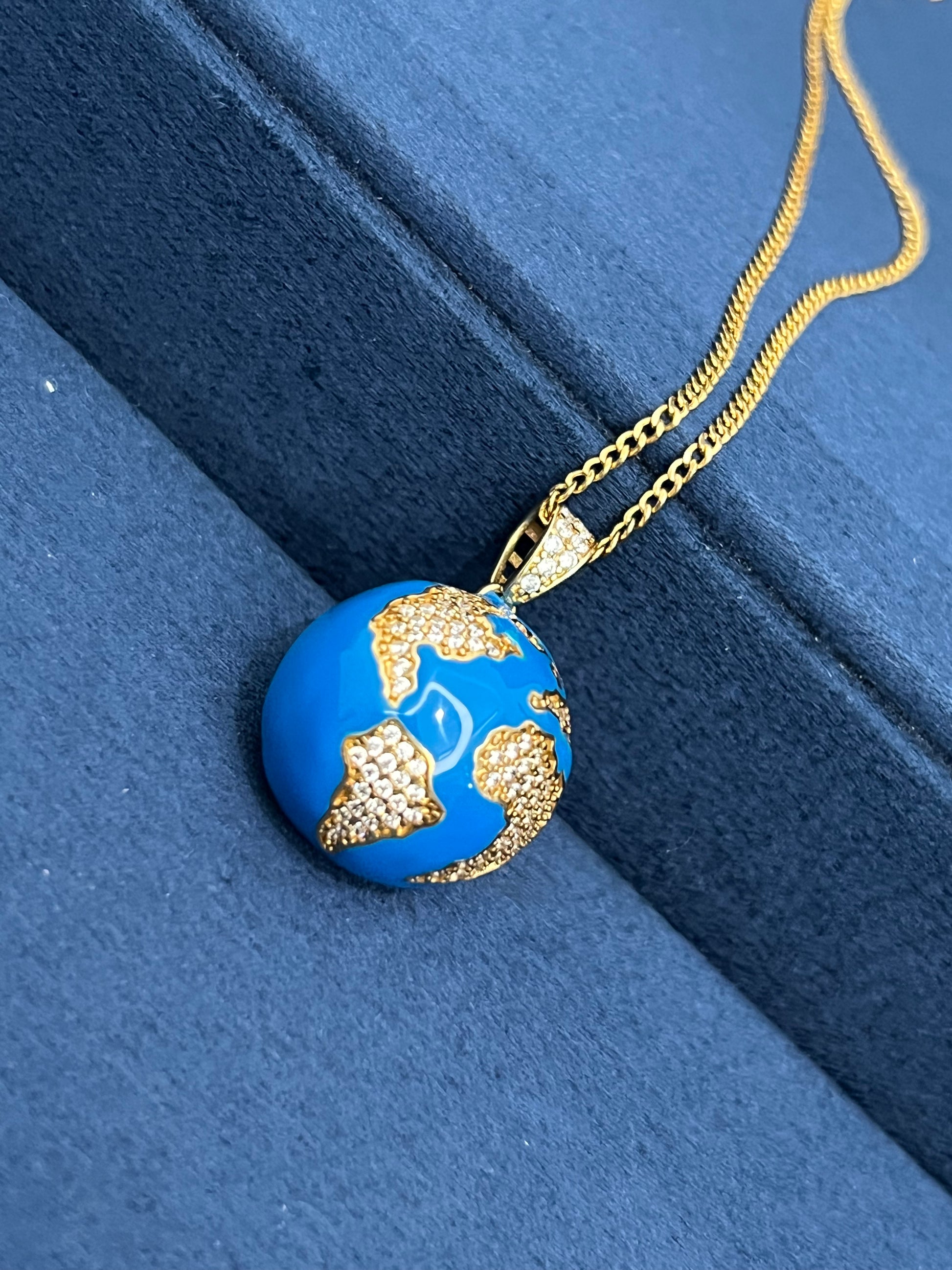 Dije mundo azul de oro 10K
